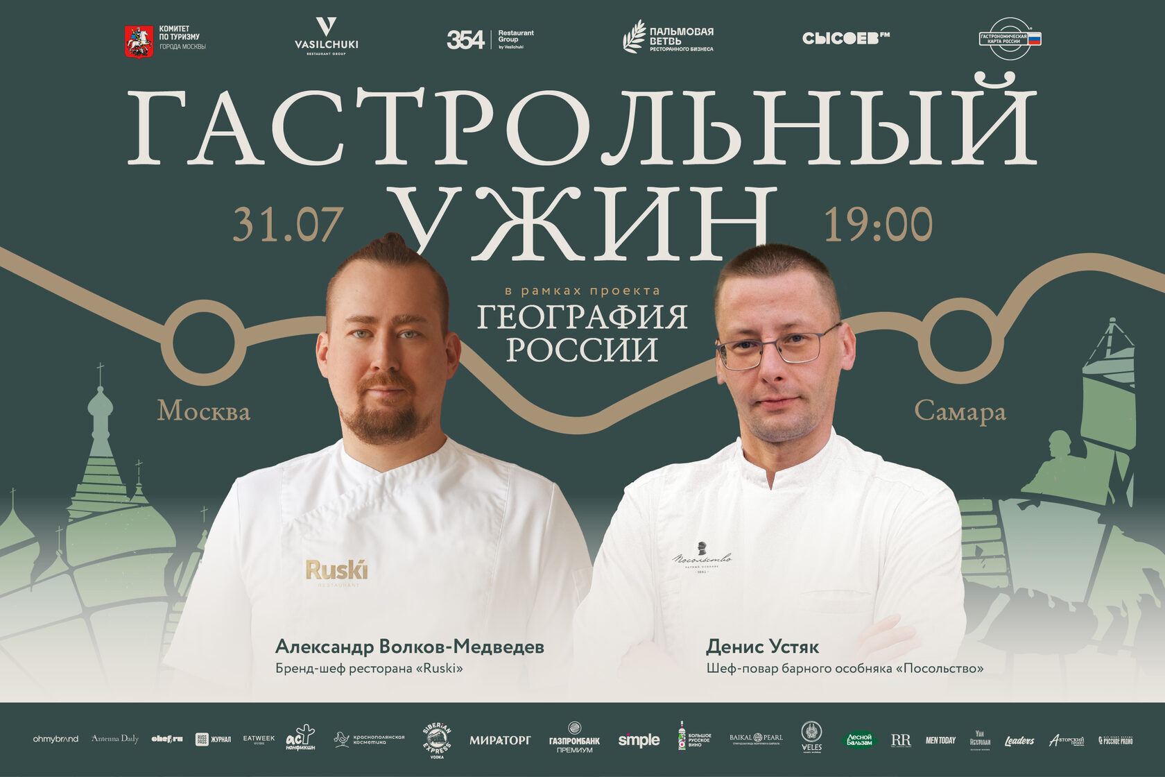 Ресторан RUSKI (354 Restaurant Group by Vasilchuki) при поддержке Комитета по туризму города Москвы и Гастрономической карты России продолжает федеральный проект «География России». В этом году команда запустила четвертый сезон и вновь путешествует по важнейшим городам России с особыми ценностями, чтобы показать насколько богата и разнообразна российская гастрономическая культура.
